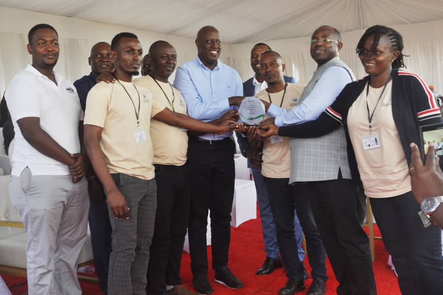 Michael joined Ugacof team members Gilbert Mukiza, Rose Nalwanga, and Muhamad Epaphra Nkundizana to accept the award from the Hon. Frank Tumwebaze, Minister for Agriculture, Animal Industry and Fisheries.
